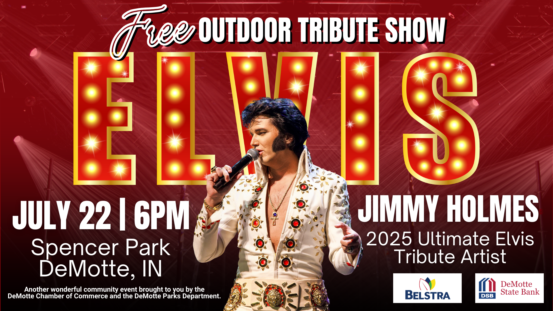 We’re thrilled to welcome DeMotte native and world-renowned performer Jimmy Holmes, named the 2025 Ultimate Elvis Tribute Artist, back home for an unforgettable performance. You won’t want to miss this!