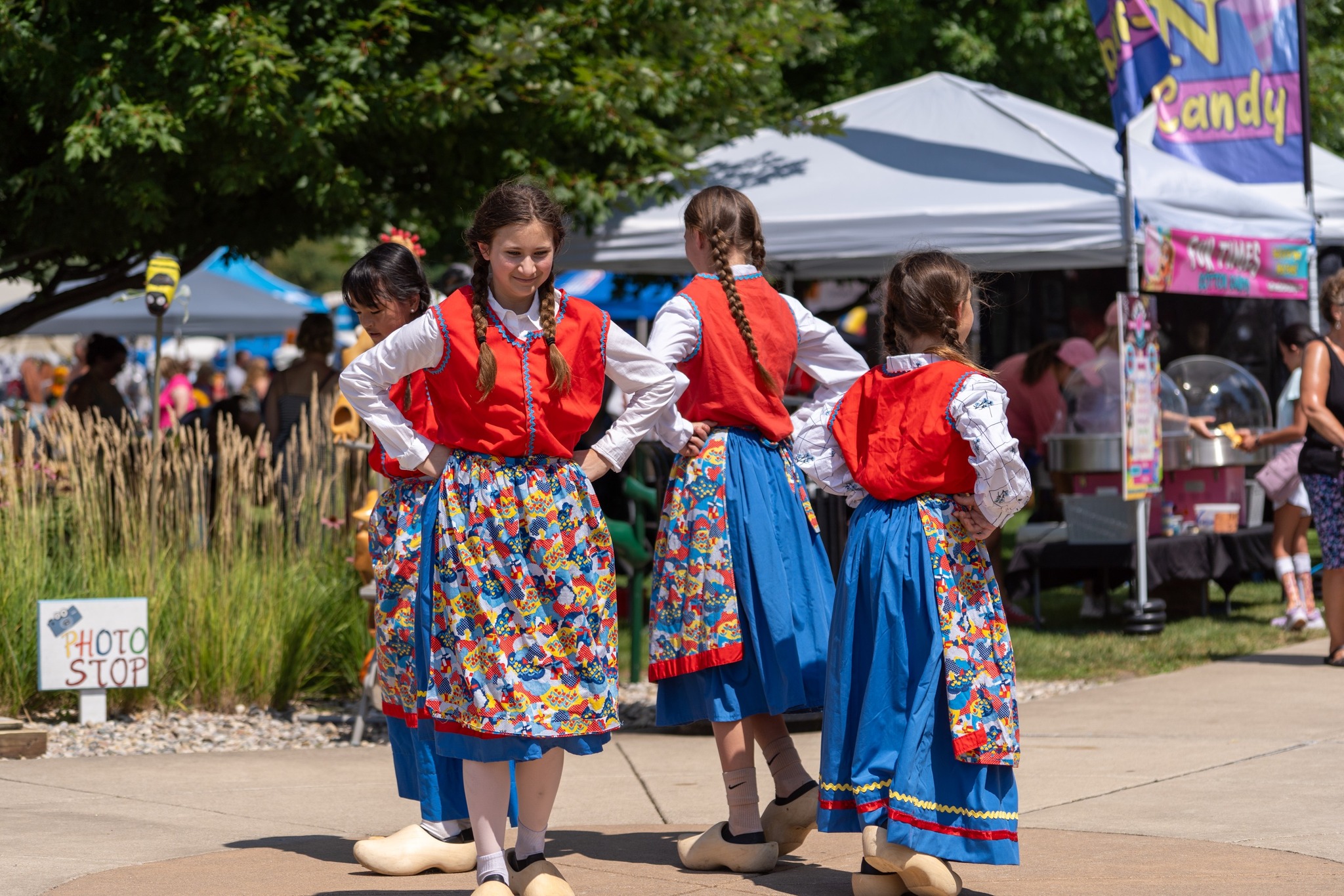 Indiana Ballet Theater will perform a traditional Dutch Dance at the 4-way sidewalk intersection near Tents 13 and 14 in the southwest corner of the park.